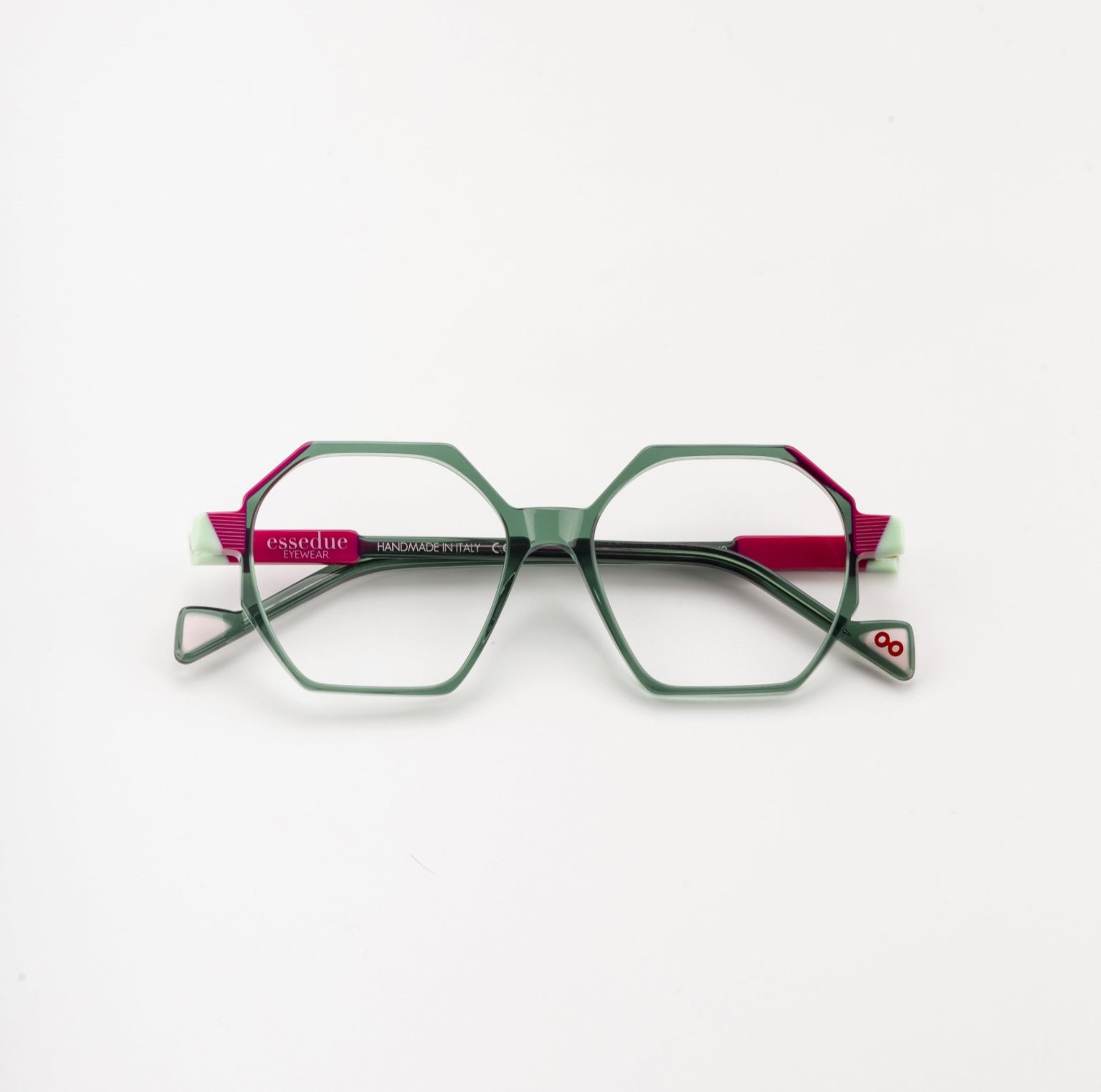 Occhiali da vista da donna dal design davvero originale, con uno stile vintage, dalla forma esagonale e inserimenti di colore sul frontale e sulle aste. Uno stile molto elegante e cool. Realizzato completamente in Italia, con acetato di cellulosa Mazzucchelli e minuterie di acciaio medicale.