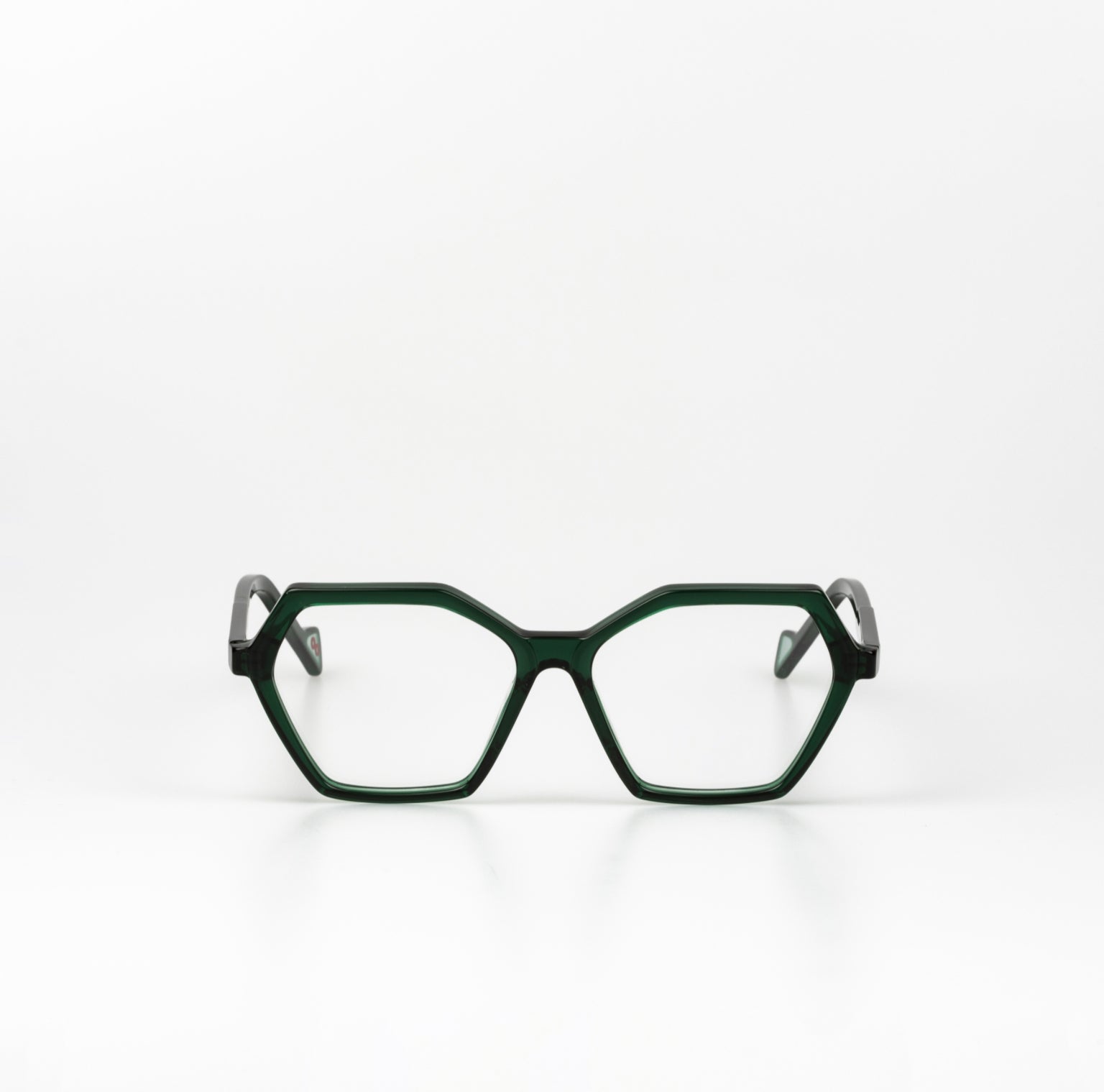 Occhiali da vista dalla montatura leggera e sottile, dalla forma esagonale, dagli angoli smussati, dallo stile molto ricercato. Ideale per un uso quotidiano e per un abbigliamento elegante e smart. Realizzato completamente in Italia, con acetato di cellulosa Mazzucchelli e minuterie di acciaio medicale.