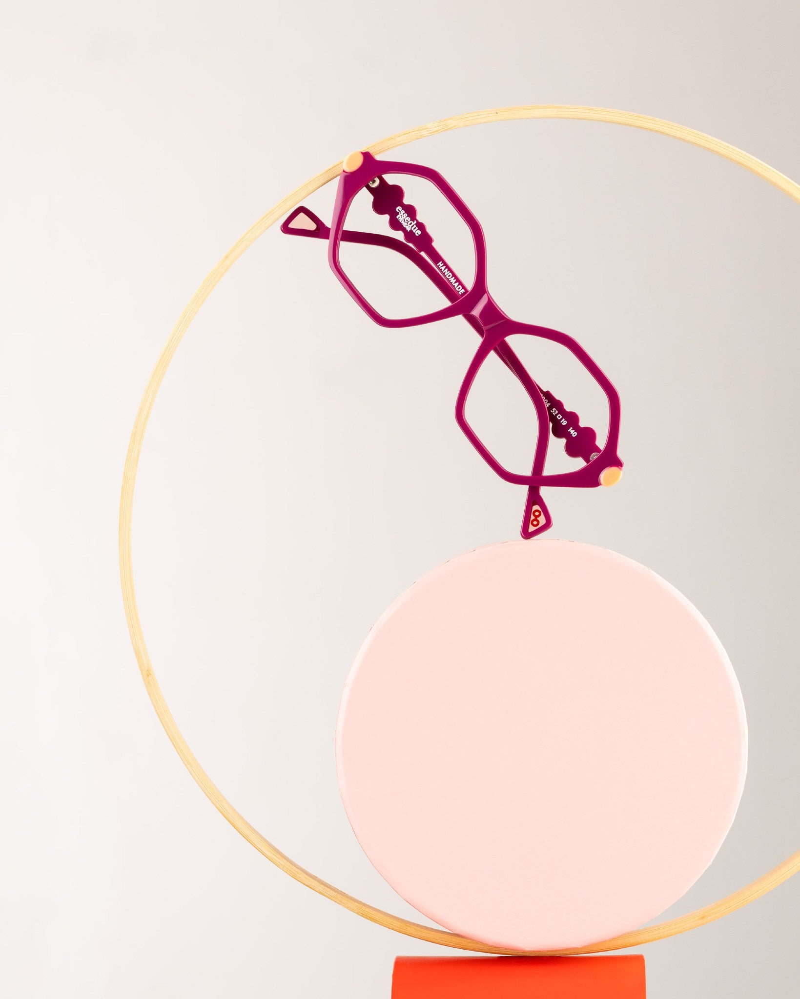 Occhiali da vista da donna, dal design vintage, ispirato agli anni Settanta. Dalla forma esagonale e dallo stile molto elegante. Ideale per un abbigliamento sbarazzino, ma anche per un uso quotidiano, confortevole grazie a lavorazioni che lo alleggeriscono. Realizzato completamente in Italia, con acetato di cellulosa Mazzucchelli e minuterie di acciaio medicale.